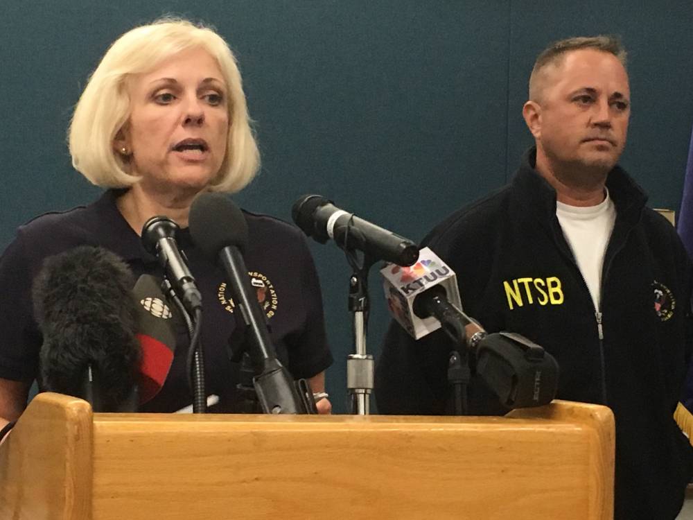 NTSB board member Jennifer Homendy spoke late Tuesday afternoon to media gathered in Ketchikan. She said the investigation will include 14 NTSB personnel, including three from Anchorage. Eleven already are on the island.