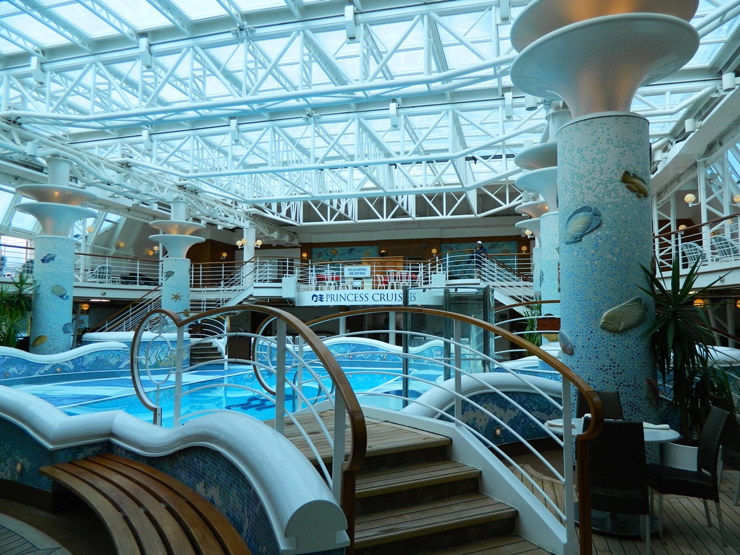 The buffet led straight through to the conservatory, which is a warm covered pool area. There’s also a 700–seat theater, a gym, where passengers can burn some of their buffet calories, more restaurants to add the calories back again, and a full-service spa.