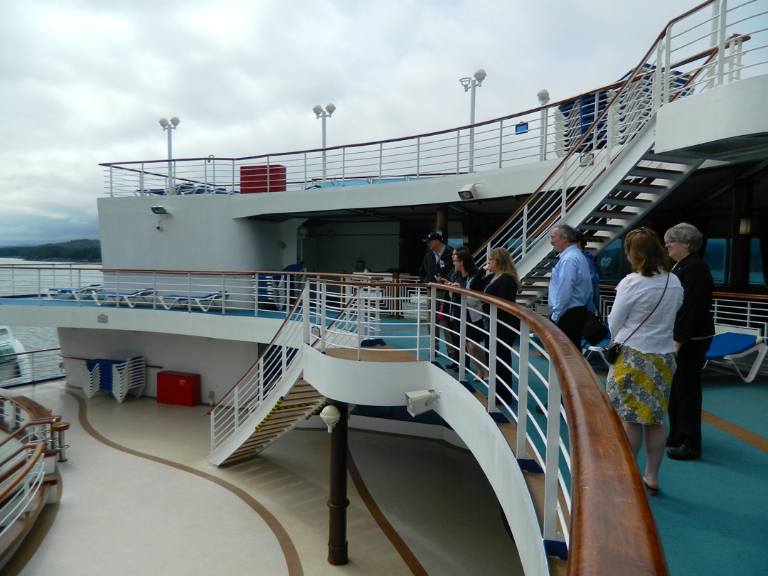 The brief ceremony took place in the Wheelhouse lounge, practically empty at 10 a.m., especially with most of the passengers on shore taking advantage of a nice day. Well, nice for Southeast Alaska, which means not raining.