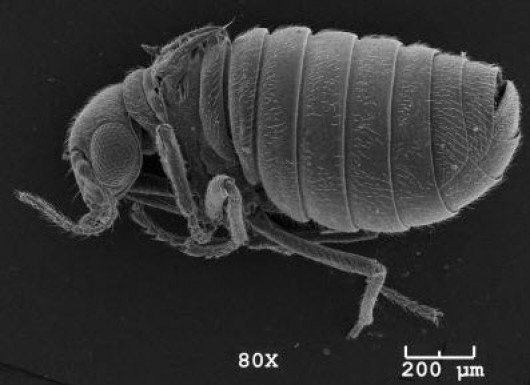 “It’s about the same size as a flea, shape, color, but it’s not a parasite,” he said. “It’s a wild, plant-feeding, probably close relative to the fleas.”