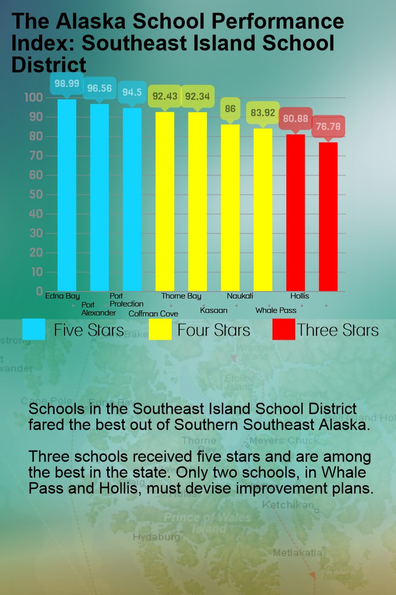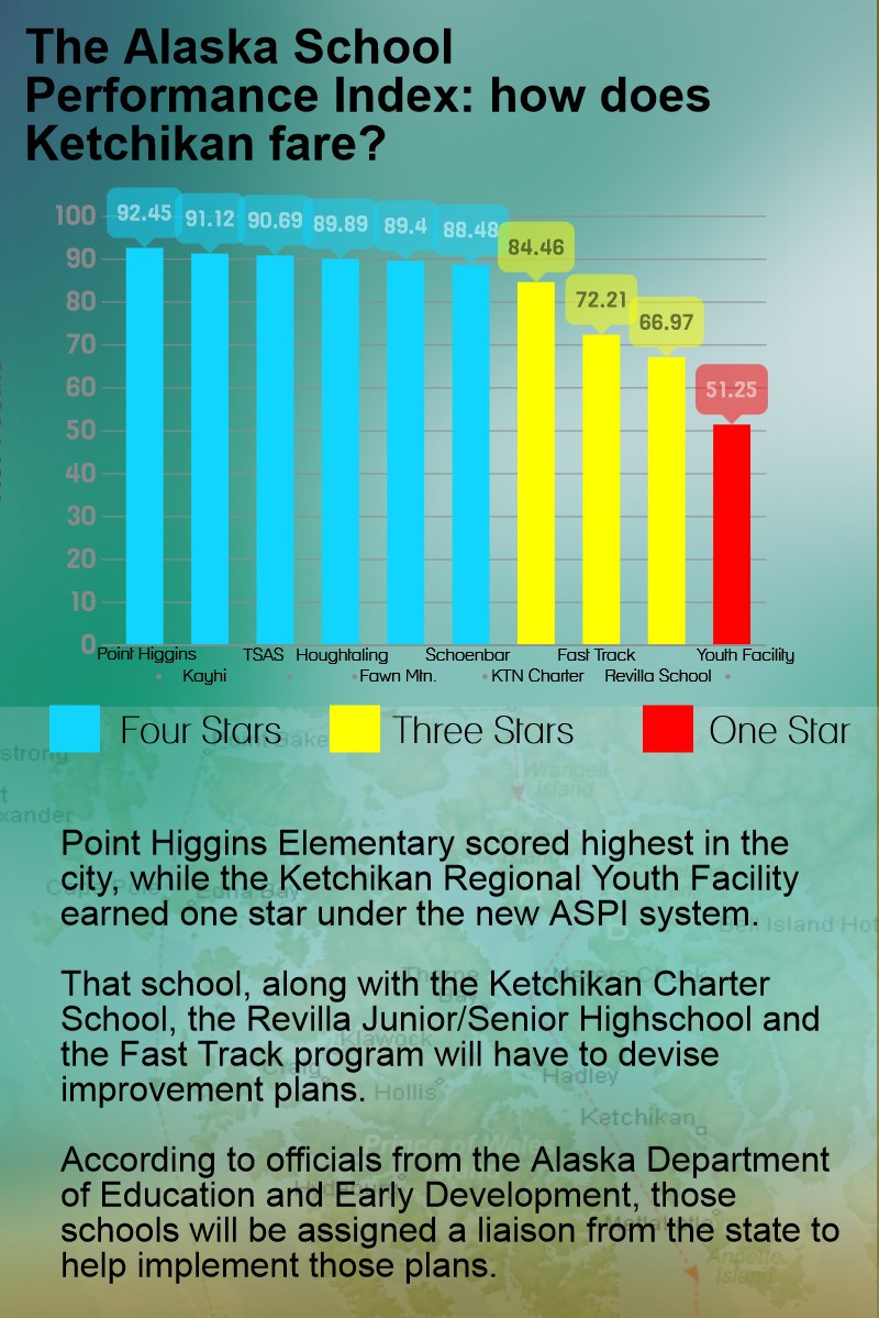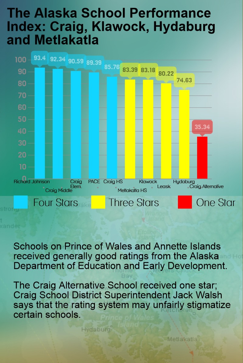 Those with three stars or fewer are required to devise an improvement plan. A number of schools in the area fall into that category, for example: Metlakatla High School, Ketchikan Charter School and Klawock City School.