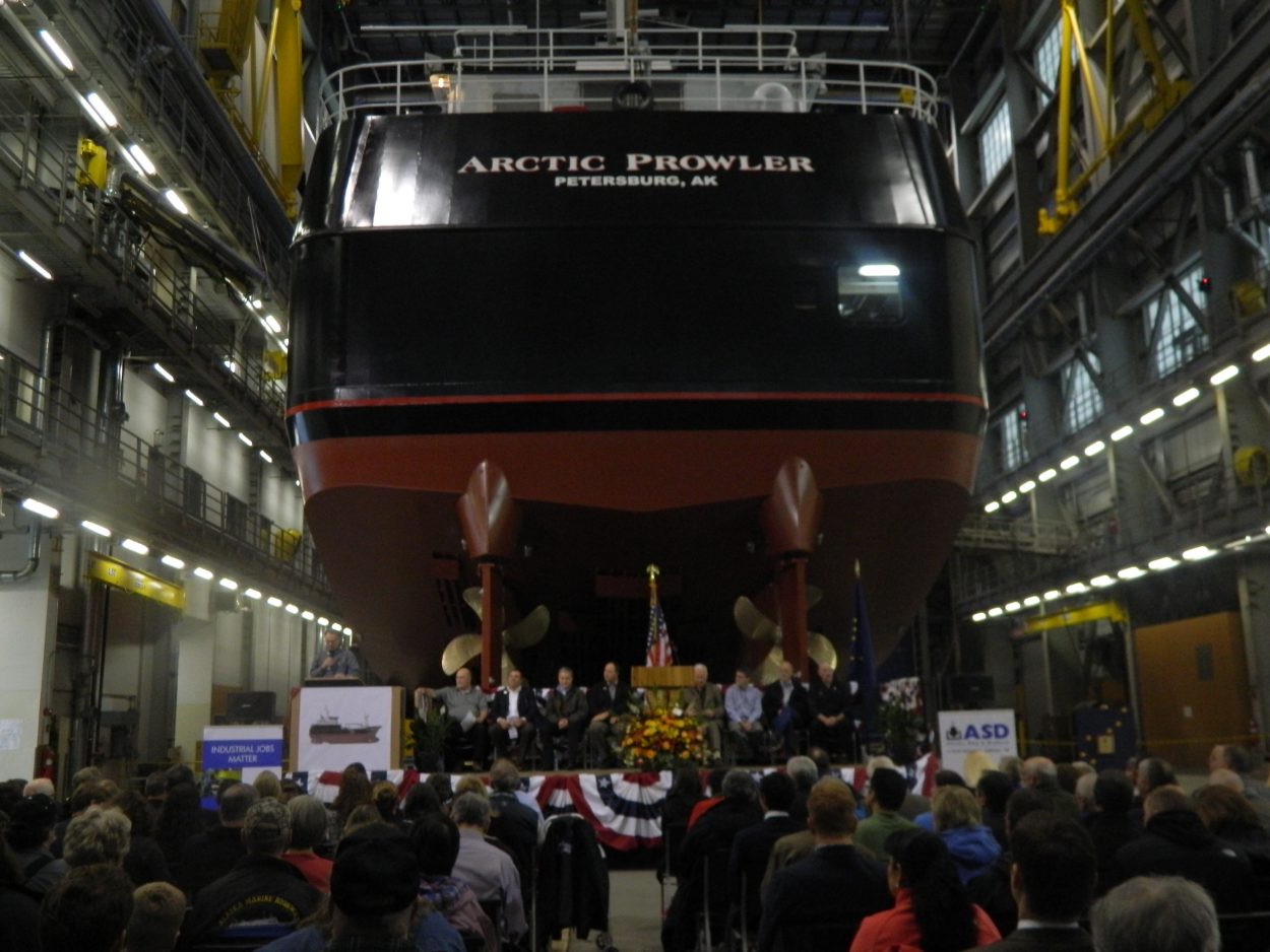 Those speakers included politicians and representatives from Vigor Industrial’s Alaska Ship and Drydock, which built the Arctic Prowler.