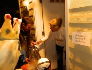 A block away on Monroe Street, the volume was lower, but there still was a steady stream of trick-or-treaters, especially at Mayor Lew William III’s house. Word on the street was that if costumed kids gave a secret password, “Dawgfather,” they’ll get a full-size candy bar.