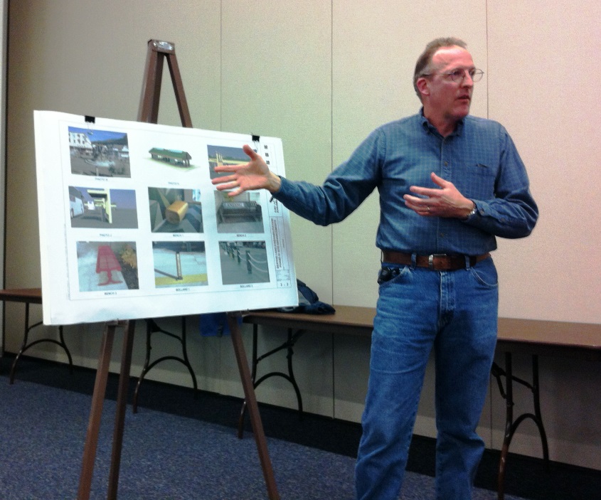 City Port and Harbors Director Steve Corporon talks during a recent public meeting about plans for uplands improvements to Berths 1 and 2 downtown.