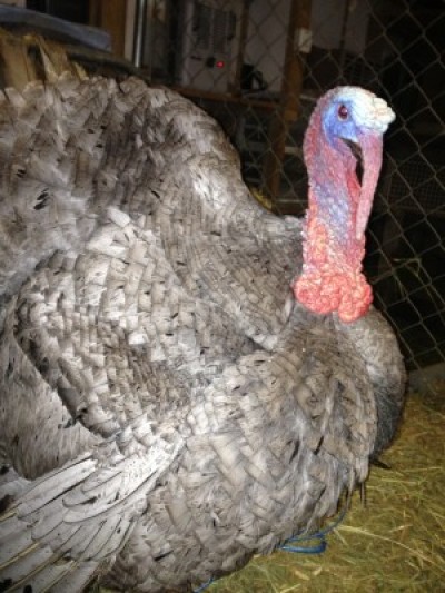 Several of Kauffman’s charges are special needs animals. Two of her turkeys, Charlotte and Mister Magoo have vision problems. She points out a duck that walks with a challenged gait from a broken leg. As we talk, two of the large male turkeys, Diogenes (die-AE-jeh-neez) and Atlas, present themselves. They strut, puff up, and display their tail feathers like a fan.