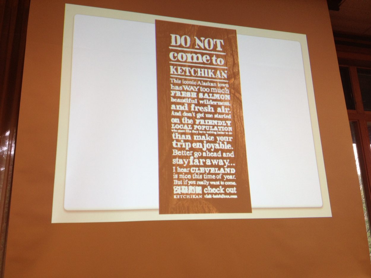 At a Ketchikan Visitors Bureau Luncheon on January 17, KVB President and CEO Patti Mackey said the ad, which was designed by the Seattle-based Green Rubino agency, is “tongue in check.”