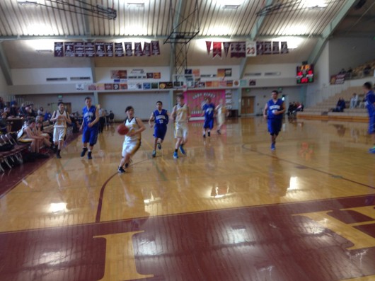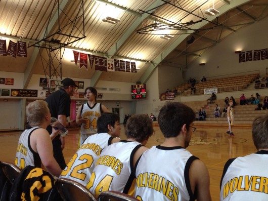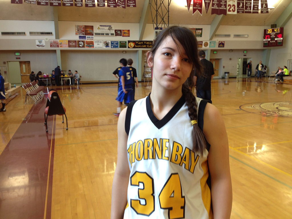 Maggie played for the last five and a half minutes of the game against Angoon. The 5’ 3’’ athlete sped around the boys, her long braid flowing behind her. A couple of her teammates from the Lady Wolverines were in the stands watching.