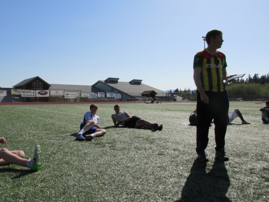 On a recent afternoon, Ketchikan High School soccer coach Scott Brandt-Erichsen is standing in the middle of about 35 teenagers who are stretching in a circle. He talks about upcoming practices and travel.