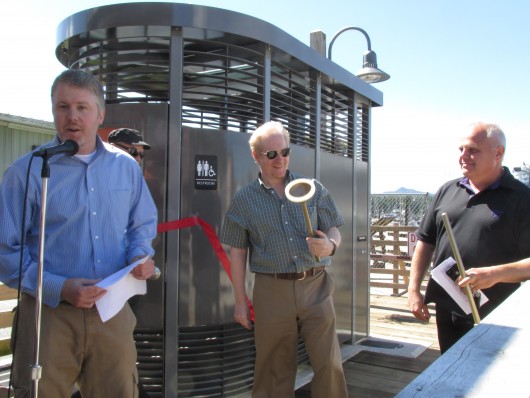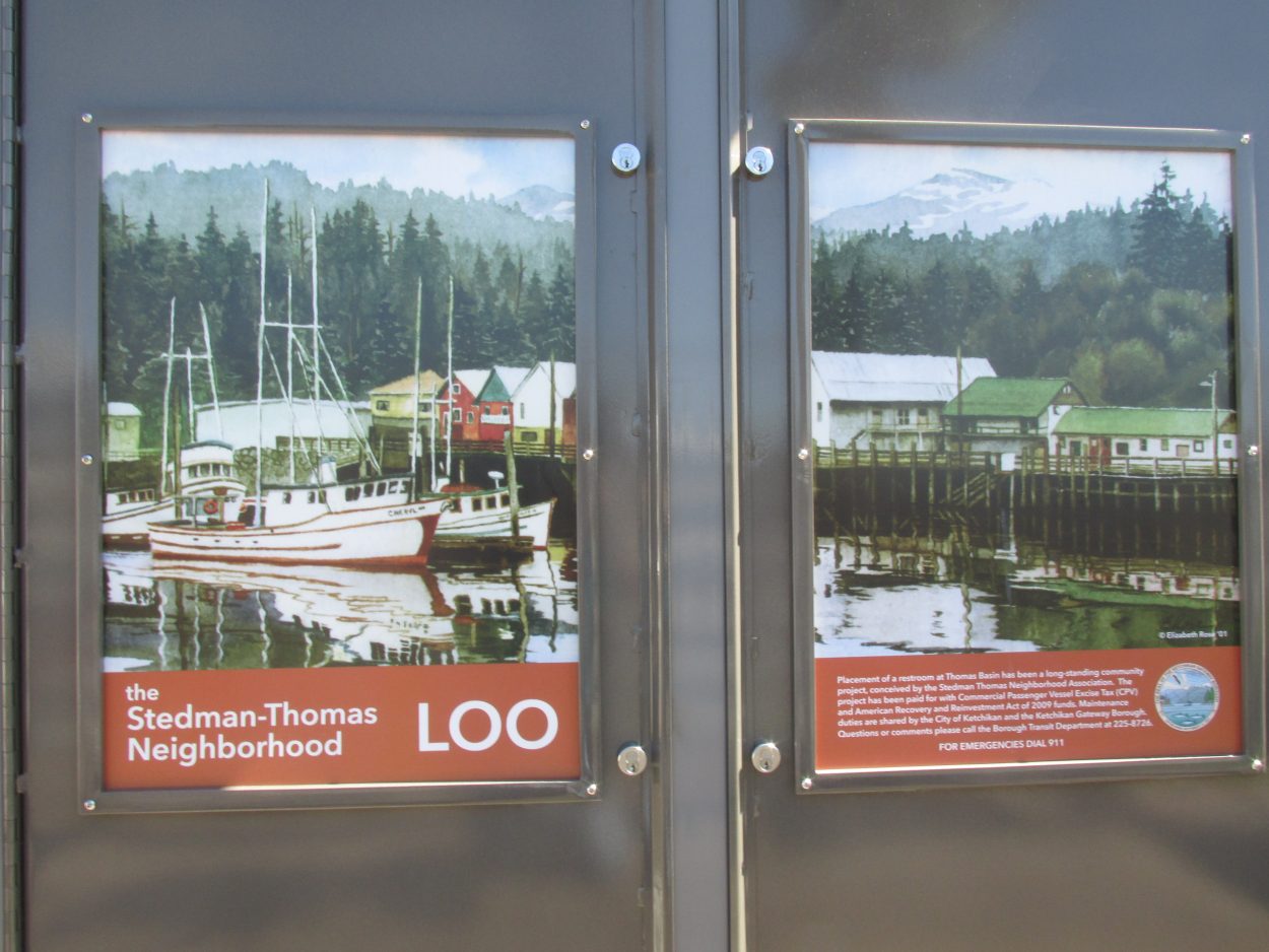 A ribbon cutting ceremony for a new public facility was held Thursday morning (June 12th) in downtown Ketchikan. The christening of the Stedman –Thomas Neighborhood Loo attracted about 40 people on a sunny and windy morning.