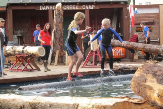 Riley and Ruby McCue of the Ketchikan Cohos Log Rolling team competed during the Ironjack show.
