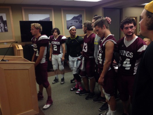 Football players filled the room at the Ketchikan School Board meeting on Wednesday evening. The Ketchikan High School team was there because of an apparent funding issue that has put one of their three home games of the upcoming season in jeopardy.