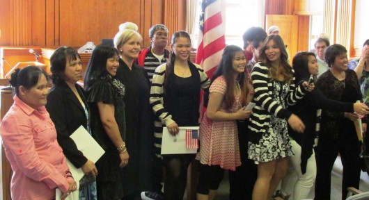 Each new citizen then was invited to speak. They gave their names and the country that they came from, The Philippines, Saudi Arabia, China, Russian Republic of Georgia and Nigeria. They all added that they are proud to be U.S. citizens.