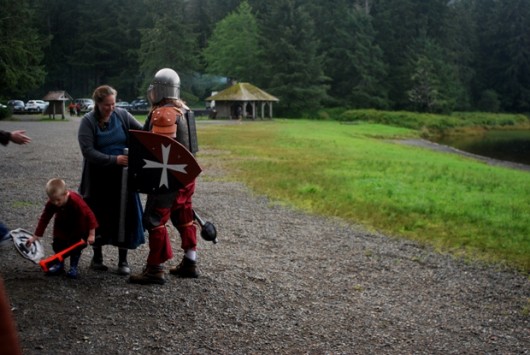It’s also about family though. Ketchikan’s chapter has short rattans wrapped in foam for the kids. Some kids even have armor and custom handmade garb. They play while the adults spar – picking berries in the woods, playing with the dogs and making s’mores by the fire.