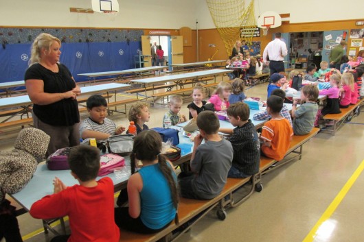 This Monday, the school transferred their intervention specialist, Darby Mainardi, to a new post as first grade teacher, for which she is certified. They moved half of the first-graders into her new classroom.