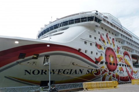 The cruise ship Norwegian Sun docks at Juneau’s waterfront on Sept. 24, one of the last days of 2014′s tourism season. (Ed Schoenfeld, CoastAlaska News)