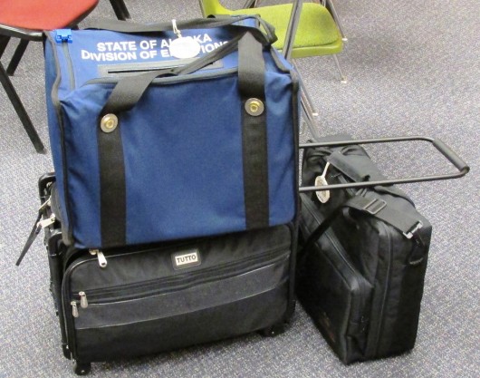 The ballots from Ketchikan Precinct 2 at The Plaza wait to be processed at City Hall on Tuesday night.