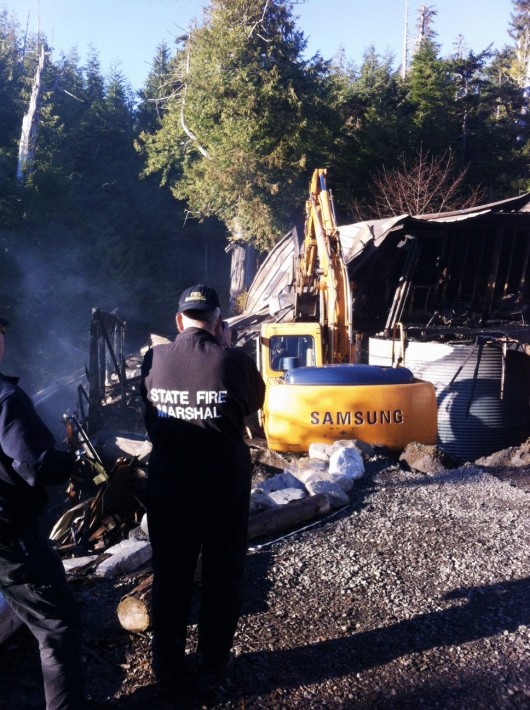The Fire Marshal, local fire responders and Alaska State Troopers were still on the scene Thursday afternoon. Here’s Lt. Rodney Dial of the Alaska State Troopers:.”We have search teams in the woods, just doing a sweep of the neighborhoods and surrounding area and we also have an excavator down there sifting through the debris of the home so we can determine cause of the fire, so we can determine cause of the fire, origin and if anybody is inside.”