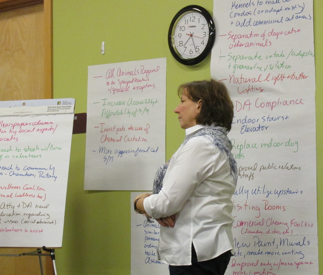 Lee split the approximately 30 participants into smaller groups, and had each come up with wish lists for the animal protection department. There were some common themes that arose. Each group wants to increase the number of pets in Ketchikan that are spayed and neutered, for example. Everyone wants a review and update of current animal control regulations, they all support a public education campaign to promote animal welfare and they want improved facilities for animals that are housed at the shelter.