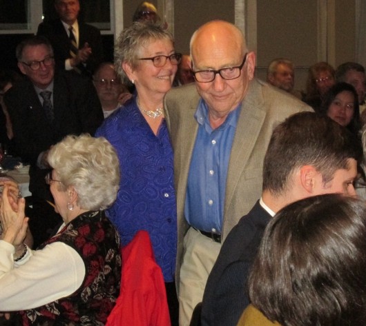 Rich and Kay Andrew move through the audience at the Ketchikan Chamber of Commerce Awards Banquet to receive the Citizens of the Year Award.