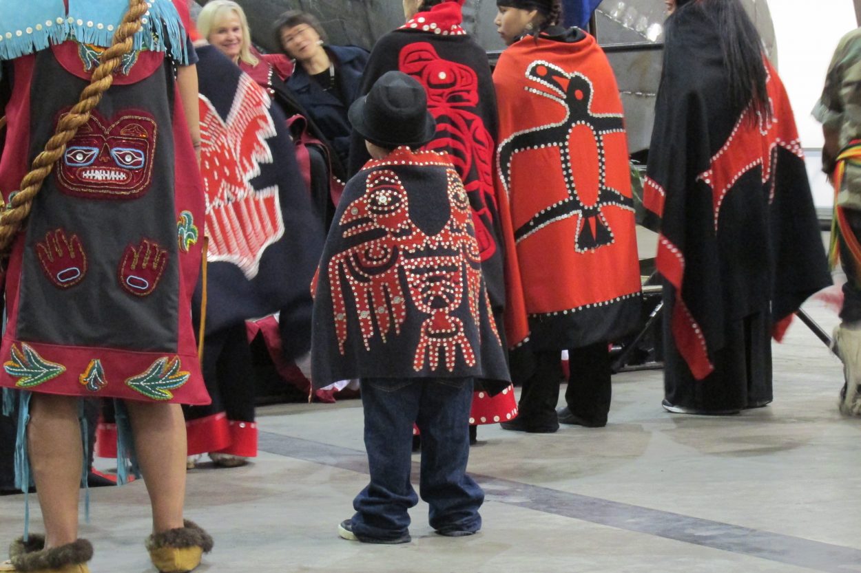 A young boy is among the Native dancers who performed at Saturday’s community reception at Ketchikan’s shipyard.