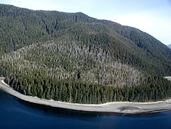 “Most of the stands, particularly at higher elevations, is where the yellow cedar occurs, and it’s scattered throughout the stands,” he said. “So, I guess you’d either have to partial-cut and leave the yellow cedar standing, in which case it would probably blow over, or not harvest at all where there is any yellow cedar, which is most of the higher elevation lands. The lower elevation is mostly red cedar, although there’s not a strict line between the two.”