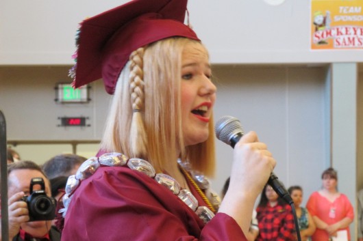 Former Ketchikan Daily News photographer Hall Anderson provided the commencement speech. Saying he doesn’t know what he’d do without a camera, he brought one with him, along with a strip of developed film. He spoke about his past 30 years covering life and events around Ketchikan.