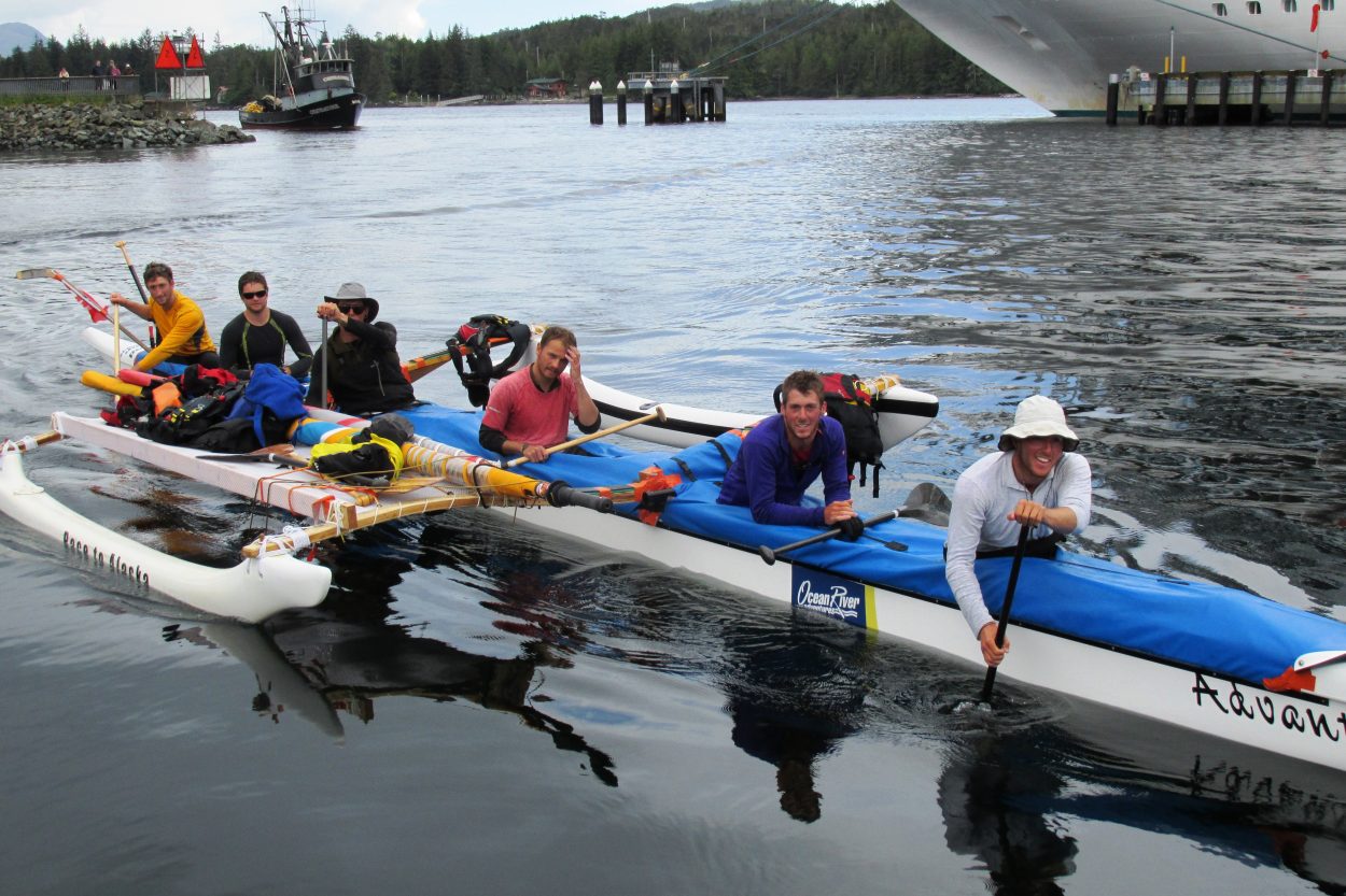 Team Soggy Beavers paddled into Ketchikan Thursday afternoon, the seventh team to finish the Race to Alaska. (Photo by Leila Kheiry.)