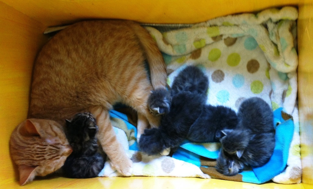Henry cleaned the kittens, and cuddled with them in their box, which kept them warm; Muench made sure they were fed properly, and took them with her to where she works, Island to Island Veterinary Clinic. There, she could keep an eye on them and have access to quick medical care.