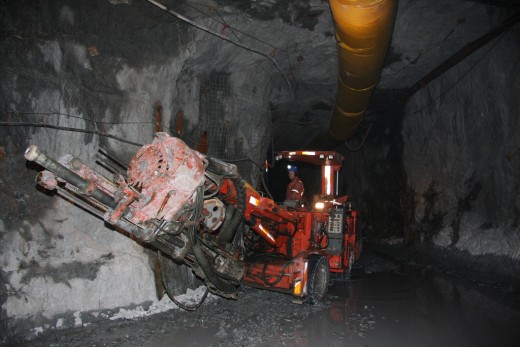 A heavy equipment operator moves a drill into position in a Brucejack Mine tunnel during exploration. (Photo courtesy Pretivm Resources)