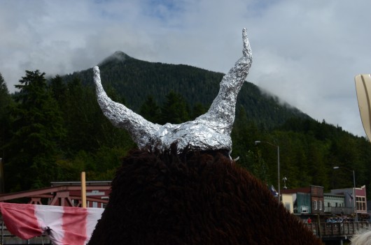 The gold head and the tail turned the wooden boat into the ‘Viking Invader’ and mom Nicole Johnson made Viking helmets out of aluminum foil.