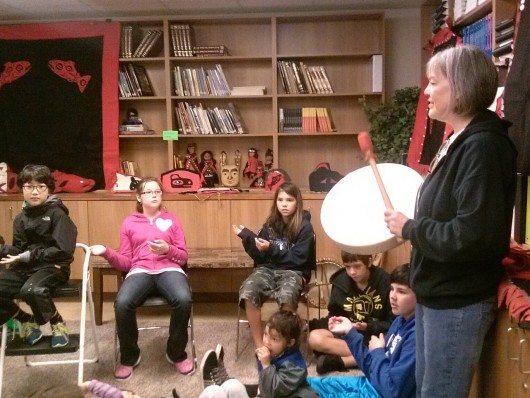 In groups, the kids sang Native songs and listened to the stories behind them. Well, some of the kids sang, while others curled up to their older siblings or friends and simply listened.