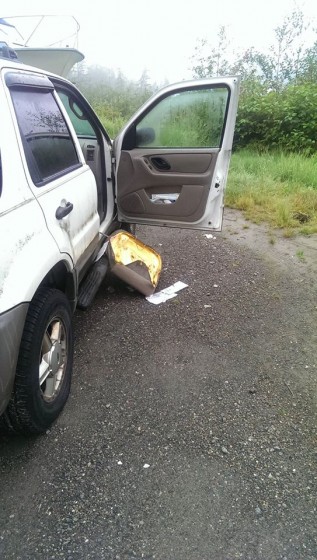 Jen Tucker’s vehicle after a bear broke in on Aug. 5th. She says he likely got in through the unlocked passenger door. She now locks her doors while at home. (Photo courtesy of Jenn Tucker)