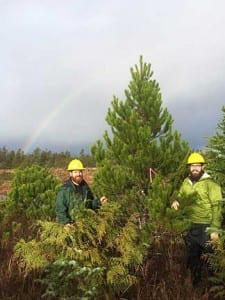 Aaron Steuerwald and Steve Hollis found the best available Shore Pine were on the Shoal Cove road system on Revillagigedo island in Southeast Alaska. (USFS photo)