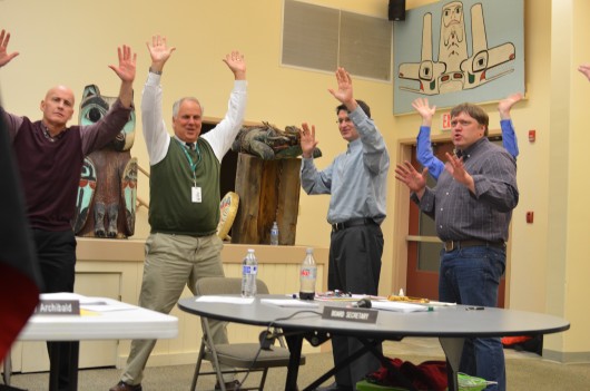 Preceding the meeting The Haida Descendant Dancers performed several songs, and invited the public to join. All of the School Board members present danced alongside community members and performers. During public comment Diane Gubatayao highlighted another aspect of Native culture in school.