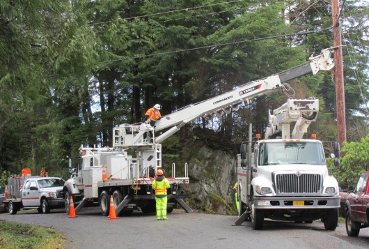 With local repairs mostly under control, Donato said some KPU Electric Division crews could start work repairing the link to Swan Lake. He hoped that work would be complete by nightfall, when winds were expected to pick up again.