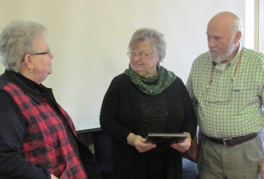 From left, Jacquie Meck presents Linda and Johnny Gilson with the Chamber of Commerce award for outstanding community service. (Photo by Leila Kheiry)