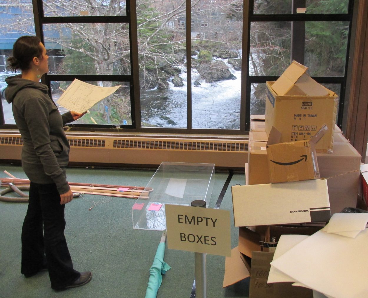 Advisory Board Member Sonya Alvarez wanted to free up space for an indoor viewing area overlooking Ketchikan Creek. It would connect to the planned temporary exhibit space, and take advantage of an existing window that now is covered over.