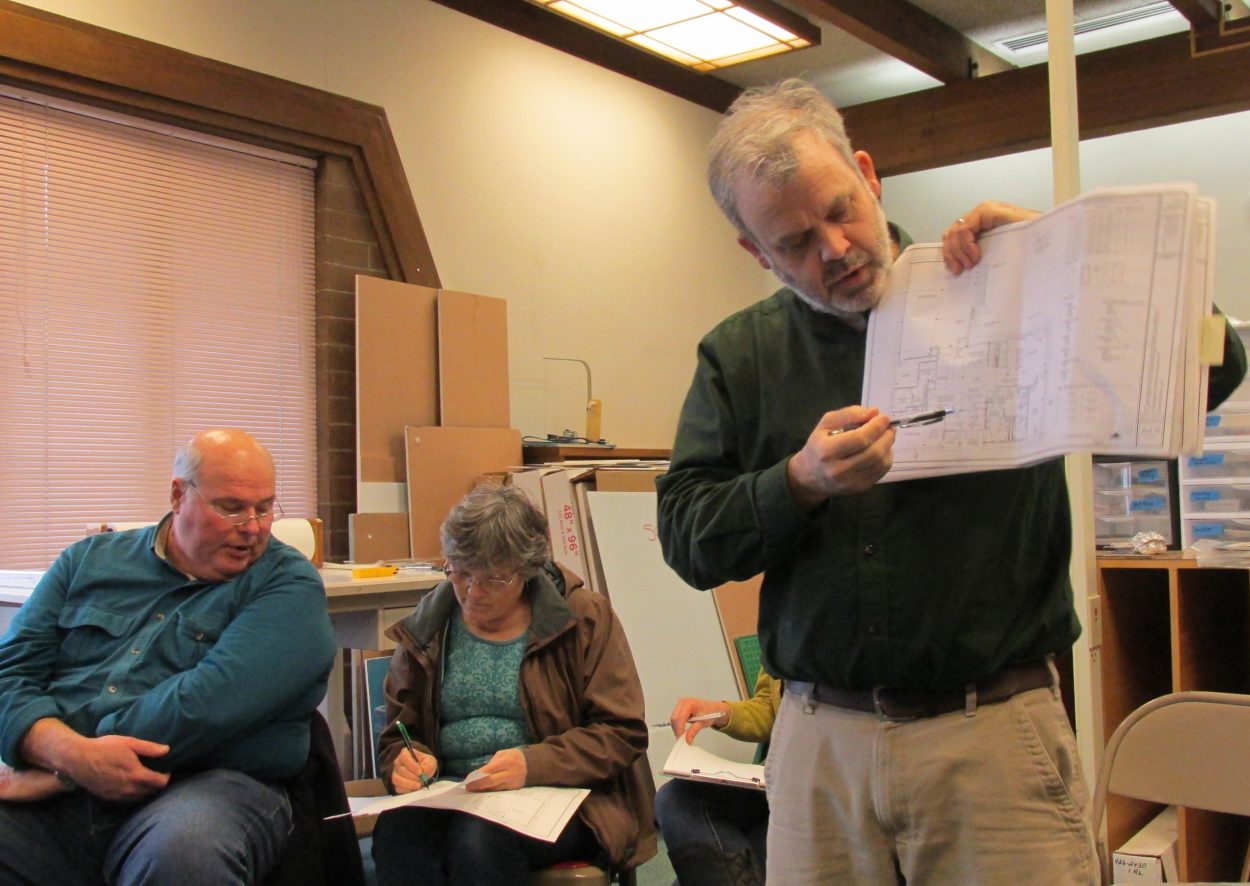 Tim Whiteley of Welsh Whiteley Architects goes over the draft museum renovation design with the Museum Advisory board. (Photo by Leila Kheiry)