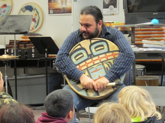 Musician Ed Littlefield has been at Fawn Mountain Elementary School the past two weeks (May 9th through 20th) teaching students about Tlingit songs and culture. Littlefield was brought to Ketchikan through the Alaska State Council on the Arts “Artist in Residence” Program.