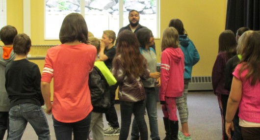 A group of 4th graders learned the halibut hook song. Littlefield had the students repeat an English translation of the words and then had them sing the song in Tlingit.