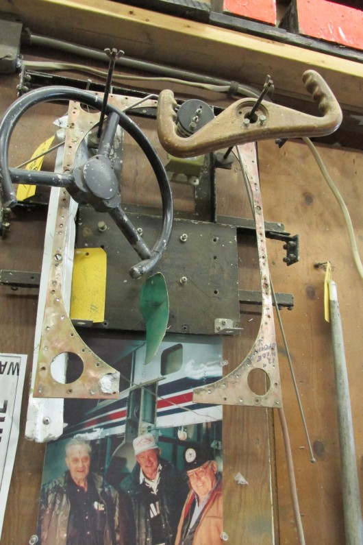 Parts for the cockpit and photo of Ray Chamberlain, Ed Zaugg and Joe Diamond, former Ellis employees who helped with the restoration.
