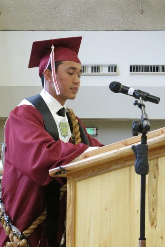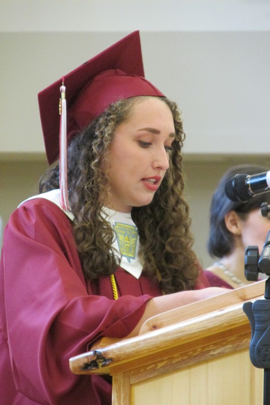 Salutatorian Bernadette Franulovich compared the challenges of a man who fell down a 70-foot waterfall and survived with their high school career.