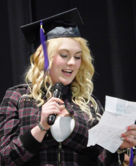 A Revilla High School graduate reads a letter of thanks during the June 1graduation ceremony. (Ed Schoenfeld/CoastAlaska News)