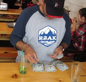 Team MAD Dog Captain Randy Miller divides the $10,000 first-place prize money. (Photo by Leila Kheiry)