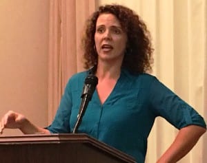 Heather Haugland of The McDowell Group speaks to the Greater Ketchikan Chamber of Commerce. (Photo by Leila Kheiry)