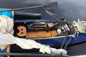 John Taussig dropped this sliding rowing seat into his kayak, and rowed instead of paddled up the Inside Passage. (Photo by Leila Kheiry)