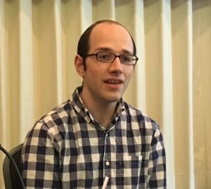 Trevor Shaw answers a question during Wednesday’s Chamber of Commerce candidate forum. (Photo by Leila Kheiry)
