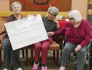 The residents, too, smiled as they unwrapped the early Christmas present. The big check – and the normal-sized official check – was for $3,375. Gomez said they raised that much because they had so many pies donated to the auction by Ketchikan’s generous bakers.