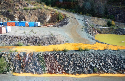A Tulsequah Chief Mine settling pond overflows at the site about 40 miles northeast of Juneau Sept. 26, 2016. (Photo Courtesy of British Columbia Ministry of Energy and Mines)