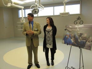 Hospital Foundation Director Matt Eisenhower and Surgery Manager Kimm Schwartz talk about the new operating rooms in the PeaceHealth Ketchikan Medical Center addition during an open house of the expansion last summer. (File photo by Leila Kheiry)